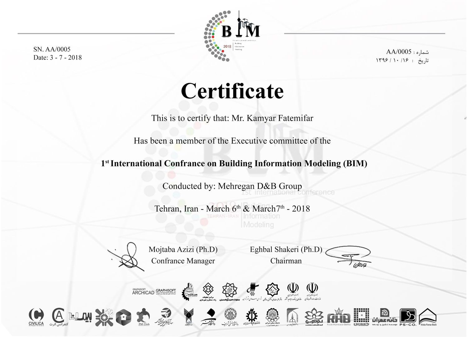 Executive Committee Certification - 3rd BIM Conference